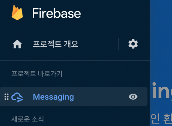 Firebase에서 Noti를 구현할 프로젝트로 접근 후 다음의 같은 순서로 들어간다.