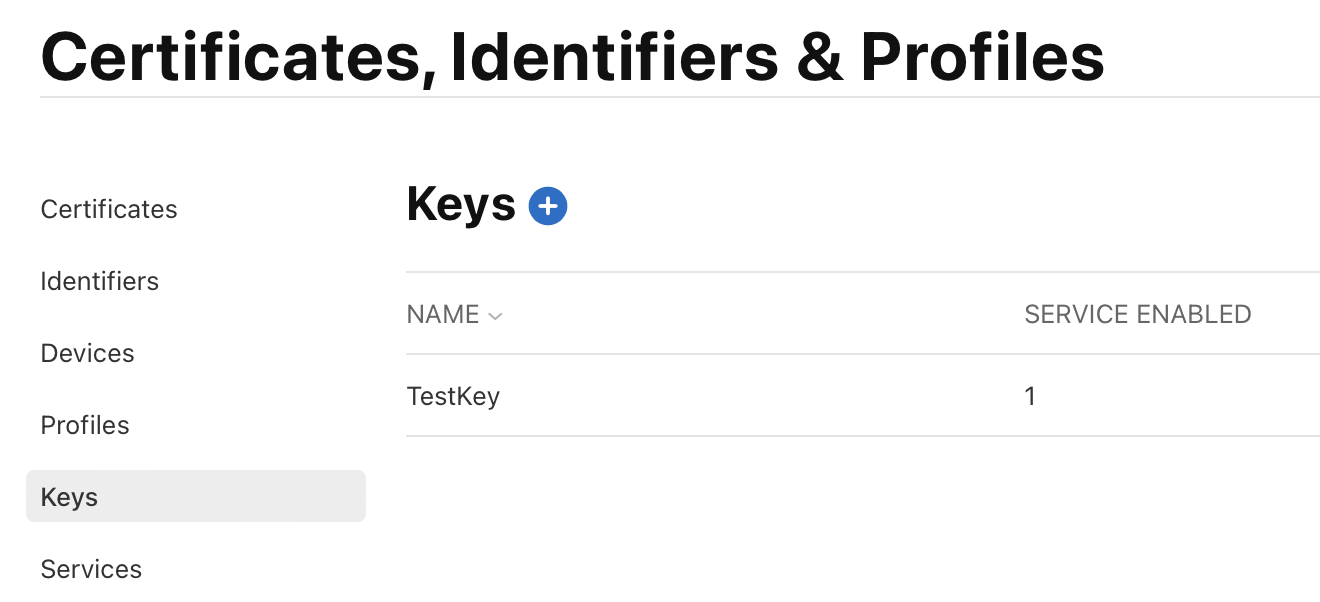 2. +버튼 누르고, Key Name 작성 & APNs에 체크