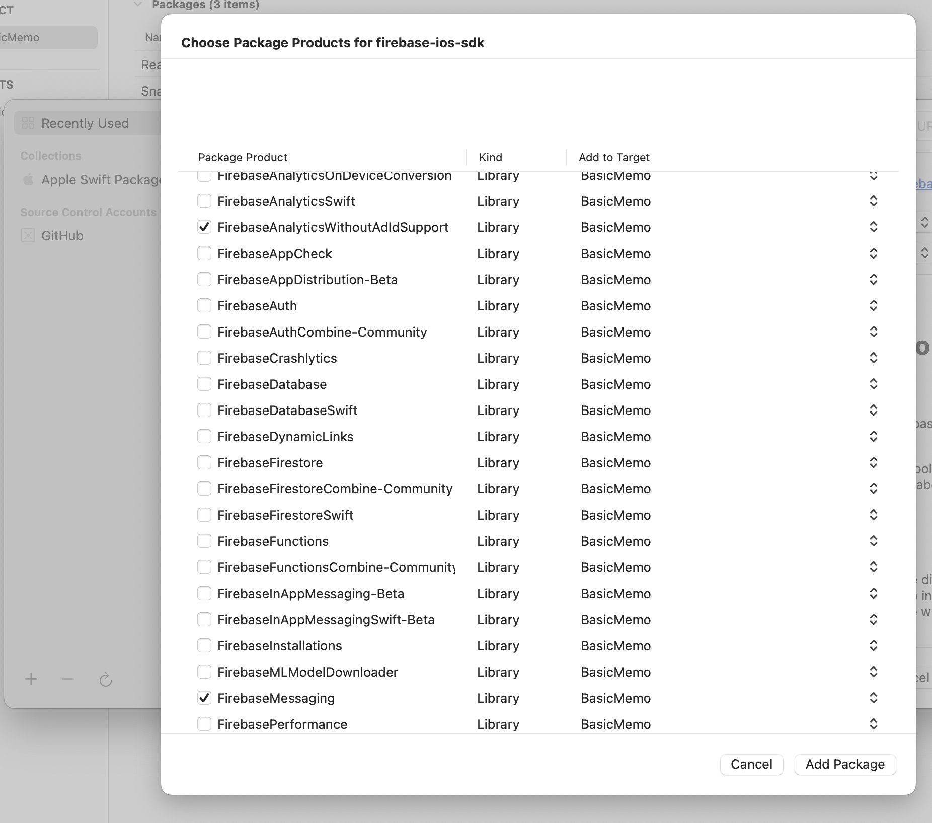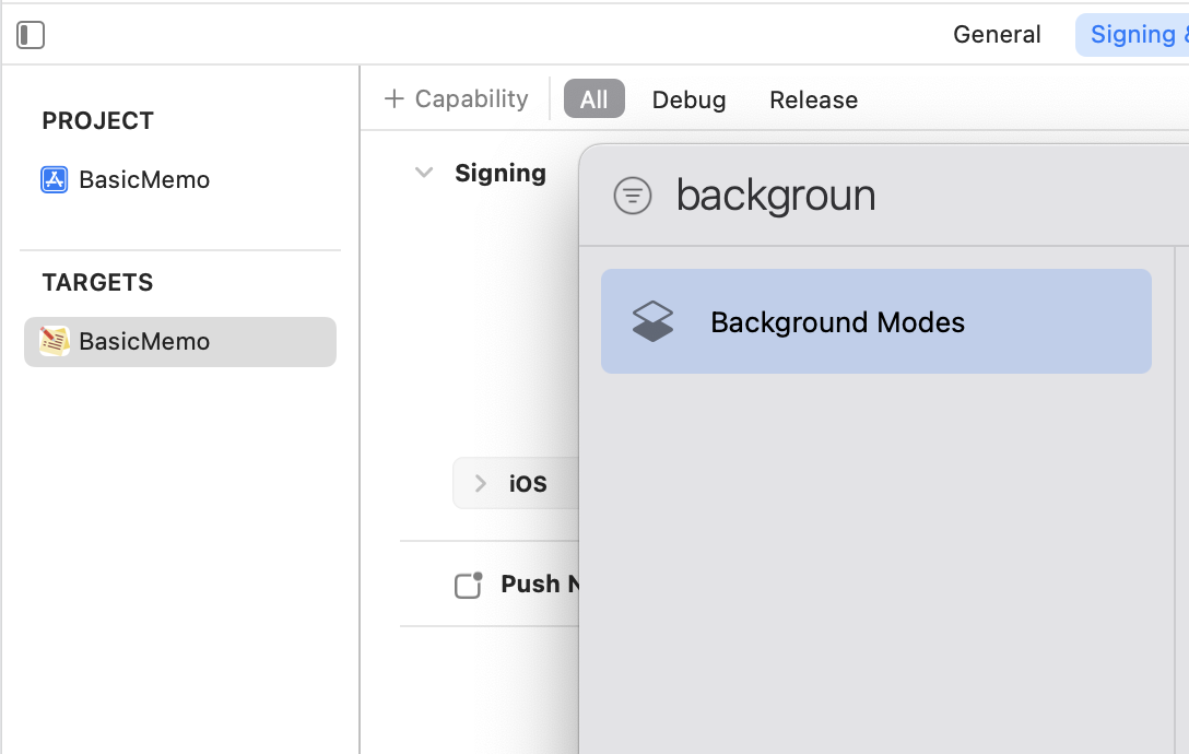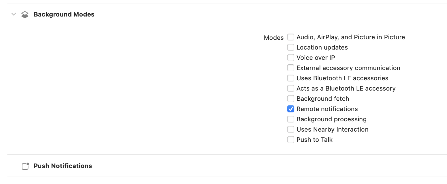 + Capability에서 Push Notification, Background Modes 선택 & 추가