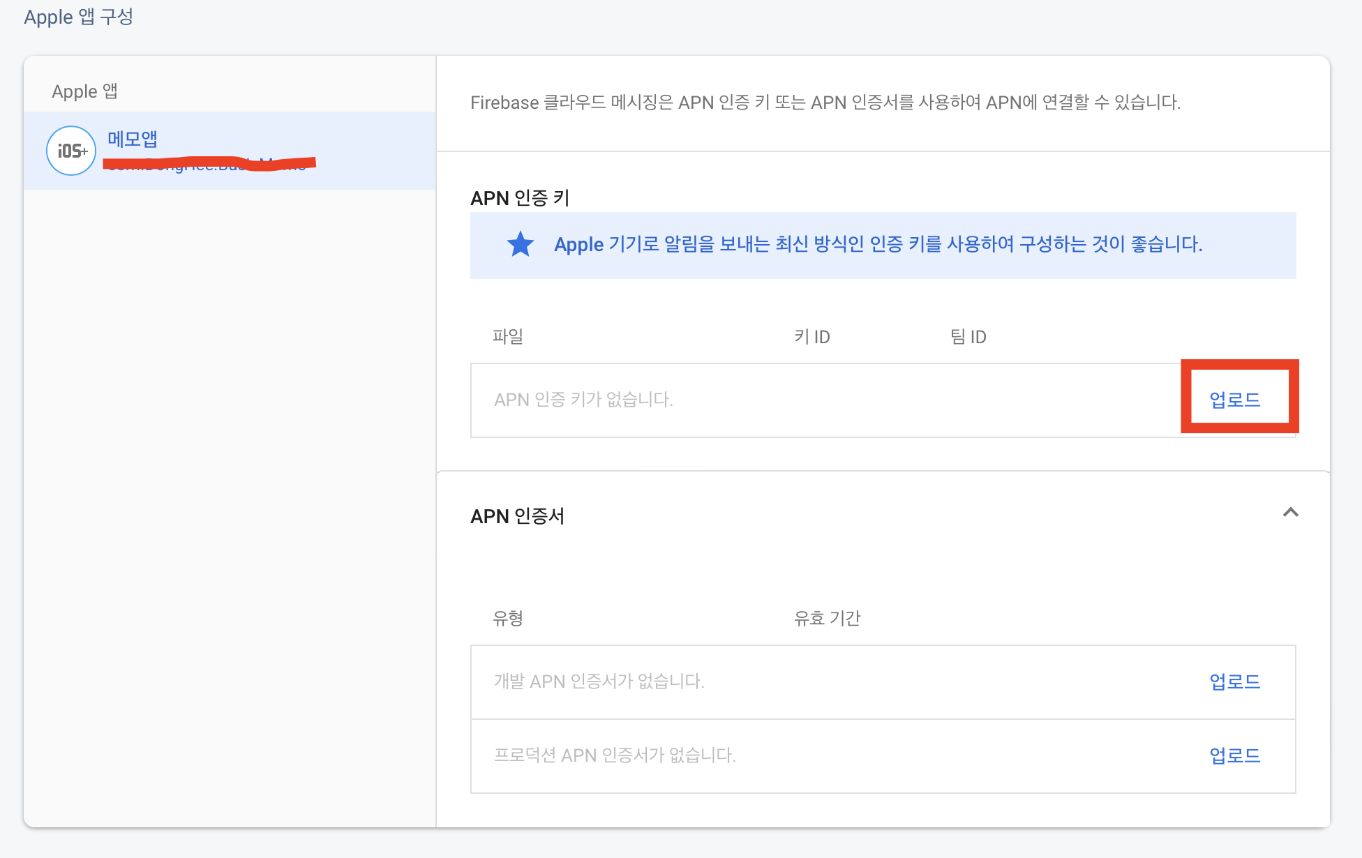 유료 애플 개발자 계정이 등록되어야 Push Key 발급 가능